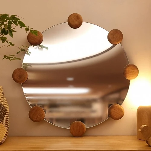 Espejo circular con detalles en madera sólida / Medidas generales: 70 cm diam