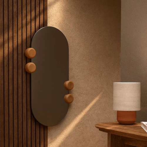Espejo ovalado con detalles en madera / Medidas generales: 45 cm x h 100 cm