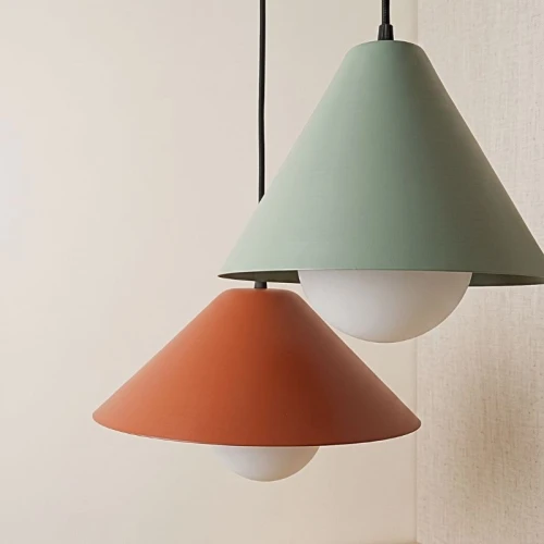 Lámpara de techo de diseño contemporáneo que destaca por sus líneas geométricas y acabado limpio. Su estructura presenta una pantalla cónica fabricada en acero que sirve como marco direccional para un difusor esférico de vidrio con acabado milk (opalino) / Medidas aproximadas: 35cm diam. H14cm
