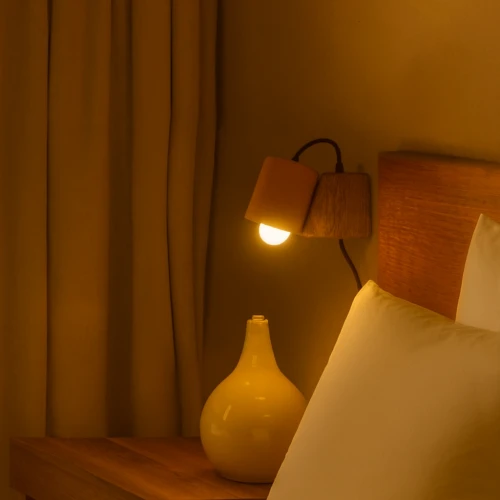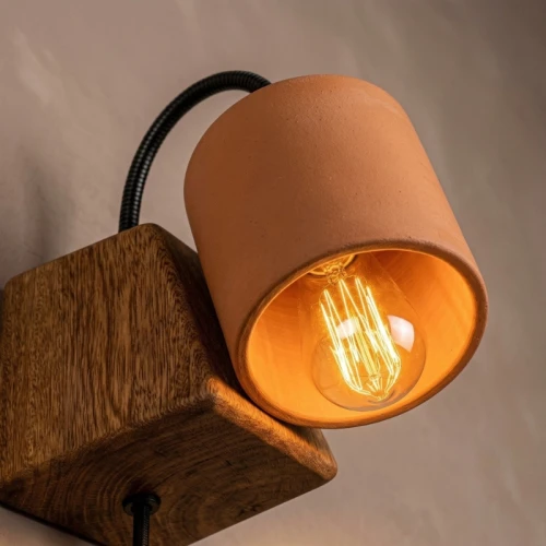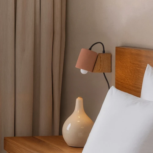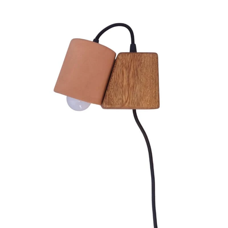 Lámpara de muro con soporte de madera y pantalla de terracota / Medidas generales: 20 x 5 x 12 cm aprox.