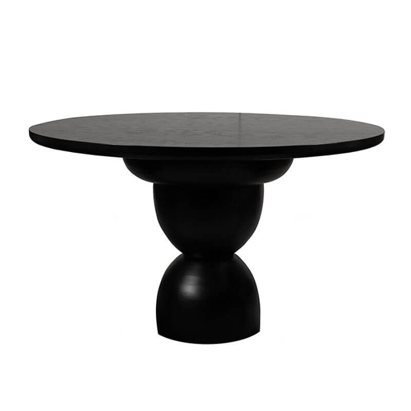 Mesa comedor circular totem con base de acero y cubierta de chapa de nogal / Medidas generales: 120 diam x H:75cm