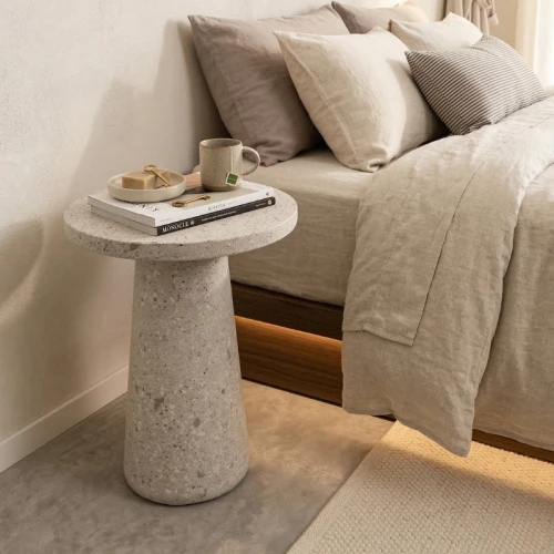 Mesa auxiliar fabricada en cantera / Medidas generales: 35 diam x h 45 cm