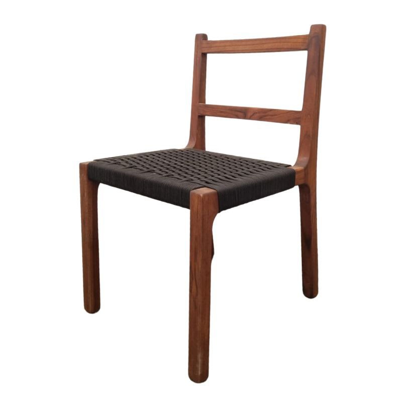 Silla fabricada en teka y tejido sintético