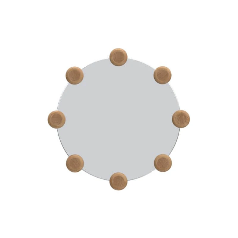 Espejo circular con detalles en madera sólida / Medidas generales: 70 cm diam