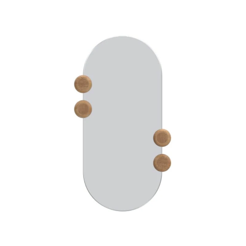 Espejo ovalado con detalles en madera / Medidas generales: 45 cm x h 100 cm