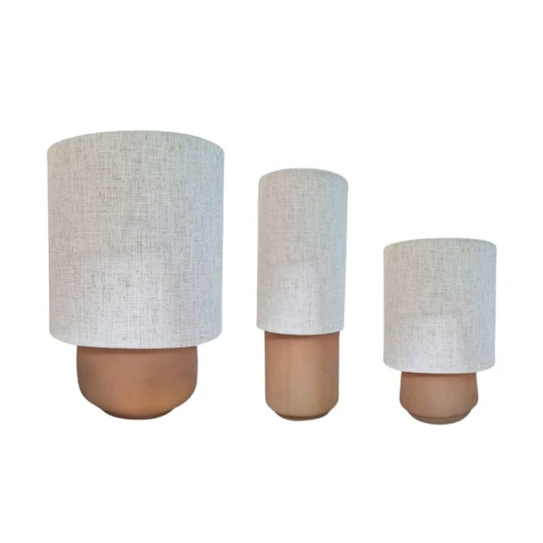 Lámpara de mesa con base de terracota y pantalla en lino / Medidas generales: 20 cm diam x h 30 cm aprox.