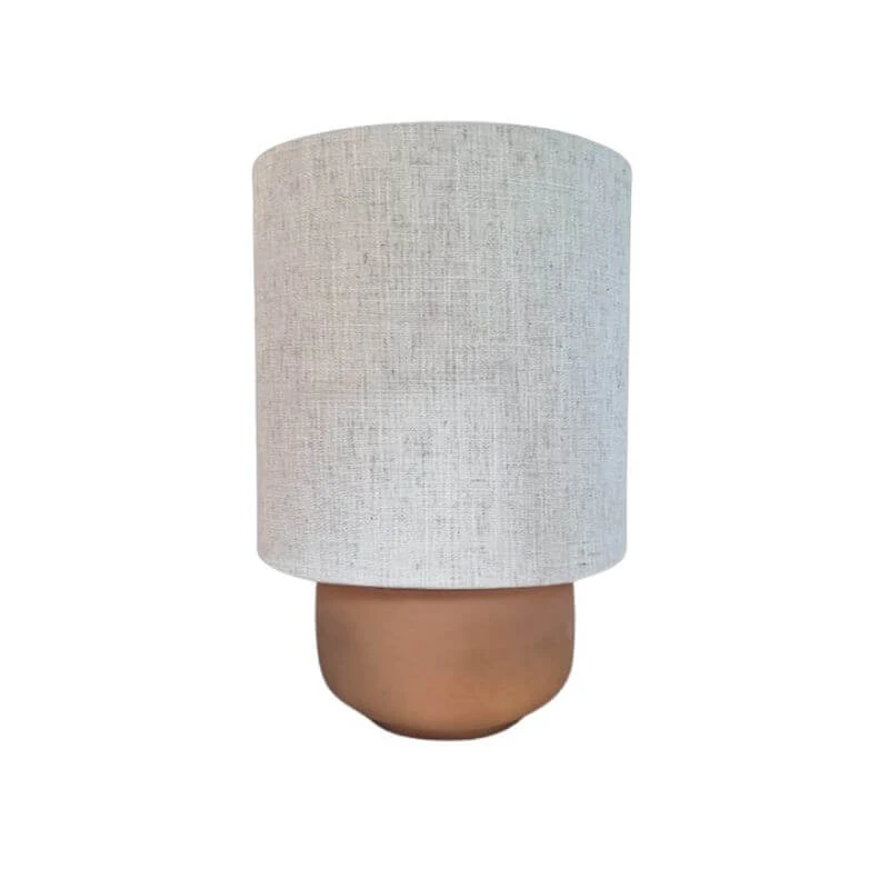 Lámpara de mesa con base de terracota y pantalla en lino / Medidas generales: 35 cm diam x h 50 cm aprox.